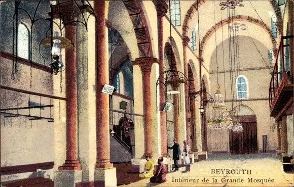 Ak Beirut Beyrouth Libanon, Intérieur de la Grande Mosquée, Innenansicht der Moschee