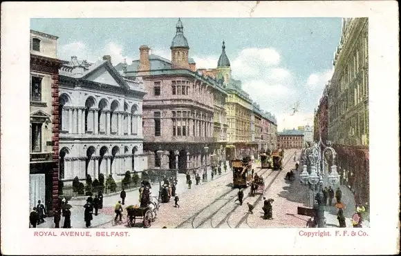 Ak Belfast Nordirland, Royal Avenue, Straßenbahnen