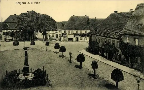 Ak Belgern an der Elbe Sachsen, Teilansicht, Kriegerdenkmal