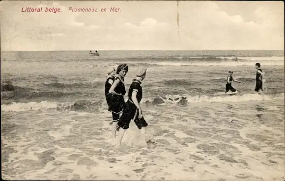Ak Belgien, Menschen im Wasser, Bademode