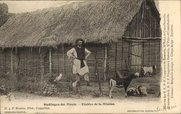 Ak Belgisch Kongo Demokratische Republik Kongo Zaire, Stallungen der Mission