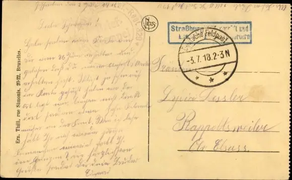 Zustand, siehe Scan, gelaufen, 1918 - ca 9 cm X 14 cm