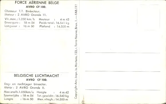 Ak Belgisches Kampfflugzeug, Avro CF 100