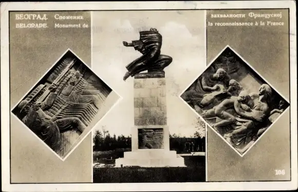 Ak Belgrad Beograd Serbien, Monument de la recoinnaissance à la France