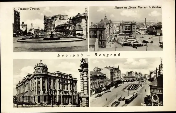 Ak Belgrad Beograd Serbien, Terazije, Palais, Vue sur le Danbbe