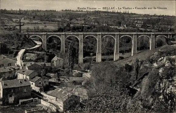 Ak Bellac Haute Vienne, Viadukt, Wasserfall am Vincou