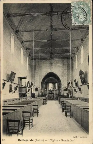 Ak Bellegarde Loiret, L´Église, Grande Nef