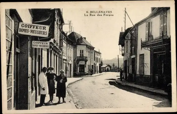 Ak Bellenaves Allier, La Rue des Forges, Friseur