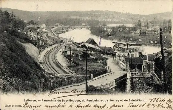 Ak Bellevue Hauts de Seine, Panorama von Bas Meudon, Fanicular, Sèvres, Saint Cloud