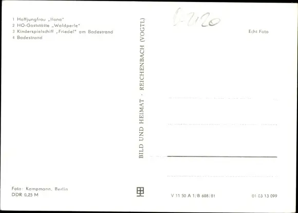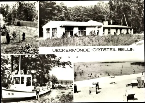 Ak Bellin Ueckermünde in Vorpommern, HO-Gaststätte Waldperle, Haffjungfrau Ilona, Kinderspielschiff