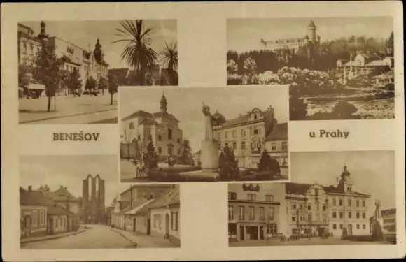 Ak Benešov Beneschau Mittelböhmen, Stadtansichten, Platz, Denkmal