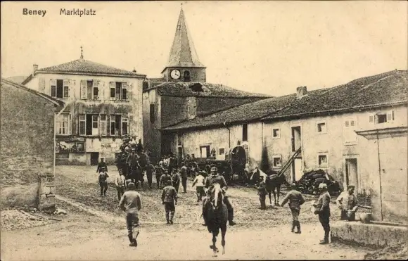 Ak Beney Meuse, Partie am Marktplatz, Soldaten, Straßenansicht