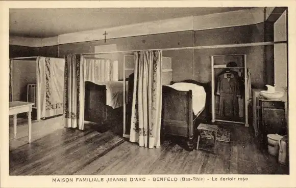 Ak Benfeld Elsass Bas Rhin, Maison Familiale Jeanne d'Arc, rosa Schlafsaal