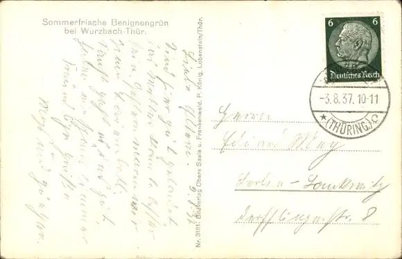 Ak Benignengrün Wurzbach in Thüringen, Blick zu einer Pension