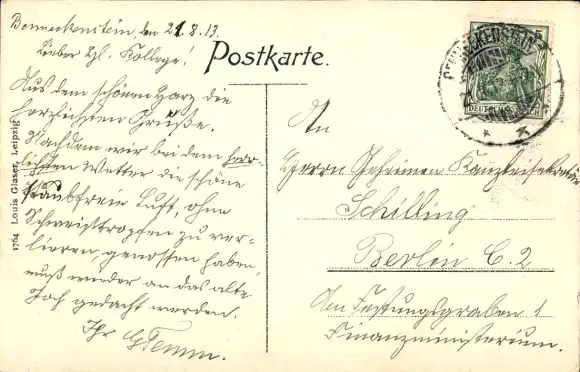 Zustand siehe Scan, 1913, gelaufen - ca 14 cm X 9 cm