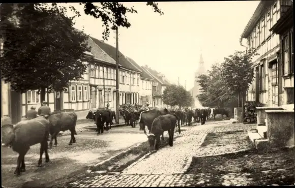 Ak Benneckenstein Oberharz, Rindertrieb durch den Ort