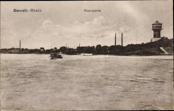 Ak Benrath Düsseldorf am Rhein, Rheinpartie, Wasserturm, Schiff
