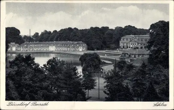 Ak Benrath Düsseldorf am Rhein, Schloss, Außenansicht, Teich