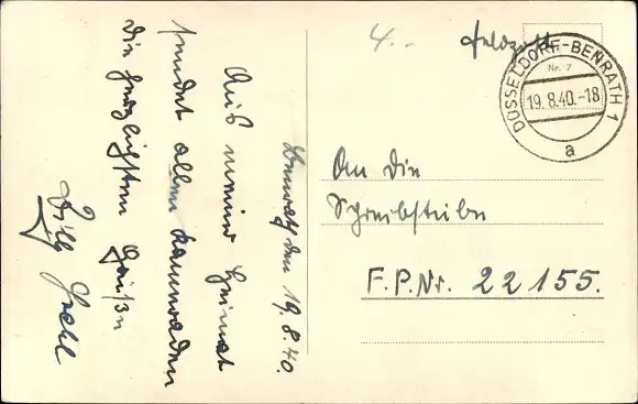 Zustand, siehe Scan, gelaufen, 1940 - ca 14 cm X 9 cm