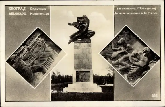Ak Beograd Belgrad Serbien, Monument de la reconnaissance a la France