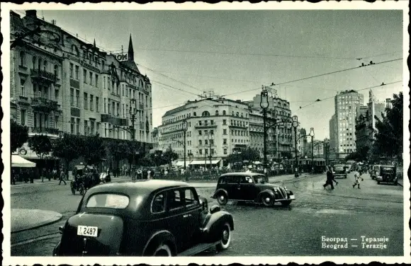 Ak Beograd Belgrad Serbien, Straßenansicht, Autos, Fußgänger, Terazije