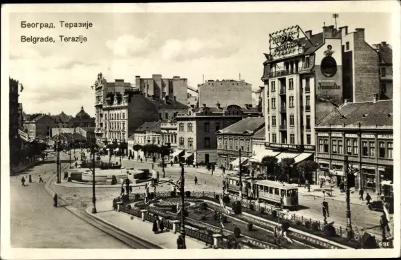 Ak Beograd Belgrad Serbien, Terazije, Straßenbahn