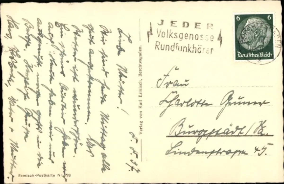Zustand, siehe Scan, gelaufen, 1937 - ca 14 cm X 9 cm