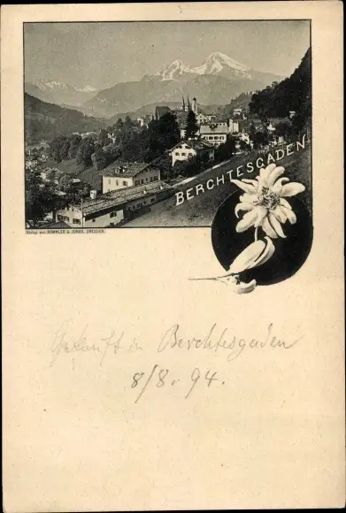 Ak Berchtesgaden in Oberbayern, Totalansicht, Edelweiß