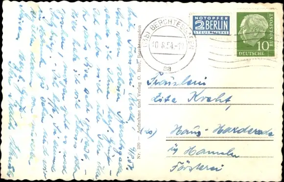 Zustand, siehe Scan, gelaufen, 1954 - ca 14 cm X 9 cm
