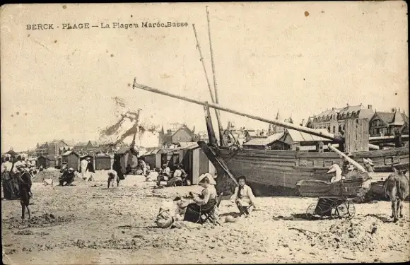 Ak Berck Beach Pas de Calais, Der Strand bei Ebbe