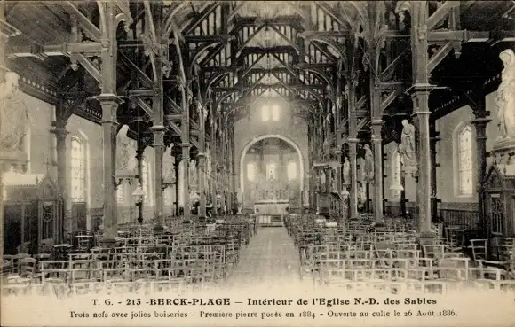 Ak Berck Plage Pas de Calais, Kirche Notre-Dame des Sables, Innenansicht