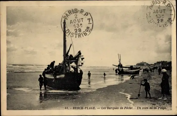 Ak Berck Plage Pas de Calais, Les Barques de Peche, Un coin de la Plage