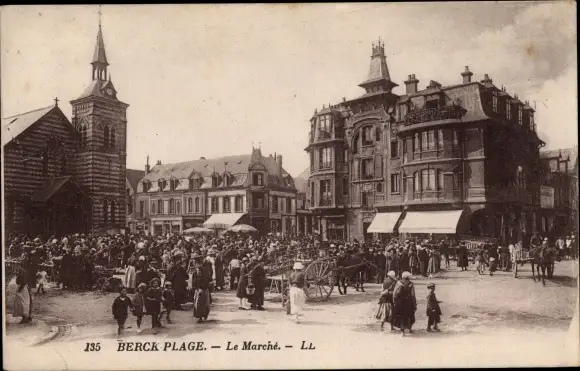 Ak Berck Plage Pas de Calais, Marktplatz, Kirche