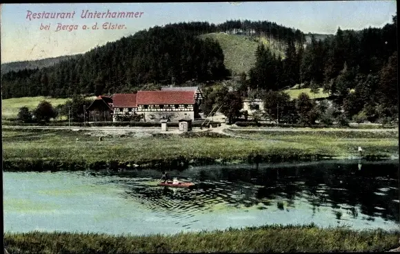 Ak Berga an der Weißen Elster Thüringen, Partie im Elstertal, Restaurant Unterhammer
