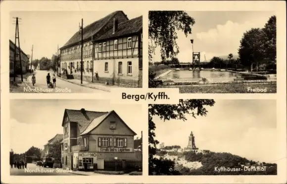 Ak Berga in Thüringen, Nordhäuser Straße, Freibad, Kyffhäuser Denkmal