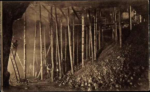 Ak Bergbau, Pfeilerabbau mit Schlacke Versatz