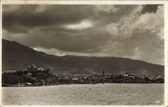 Ak Bergen Norwegen, Blick vom Meer zur Stadt, Panorama