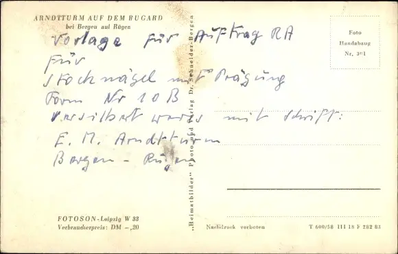 Ak Bergen auf der Insel Rügen, Arndtturm auf dem Rugard