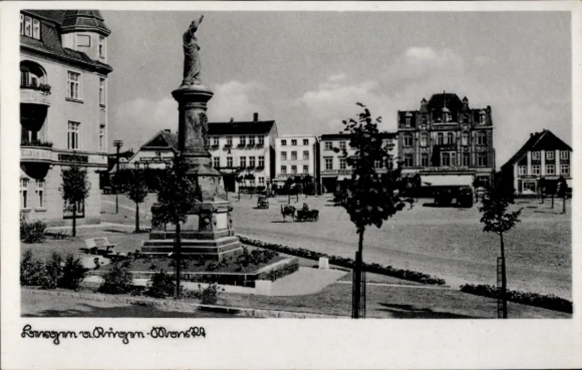 Ak Bergen auf der Insel Rügen, Markt, Denkmal