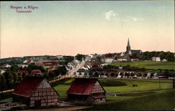 Ak Bergen auf der Insel Rügen, Totalansicht von Ort
