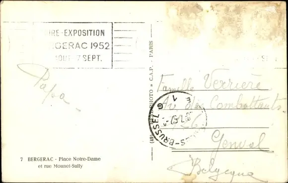 Ak Bergerac Dordogne, Place Notre Dame et rue Mounet Sully