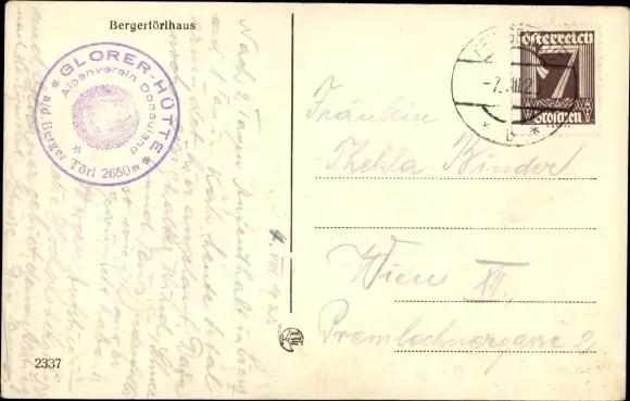 Ak Bergertörlhaus, Glorer Hütte