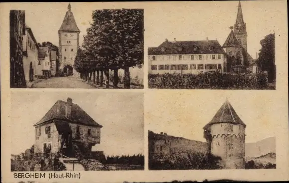 Ak Bergheim Elsass Haut Rhin, Ortsansichten, Turm, Kirche, Straße