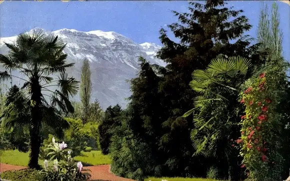 Ak Bergspitze, Gartenanlagen, Bäume