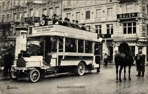 Ak Berlin, Automobil-Omnibus, Geschäfte, Passanten