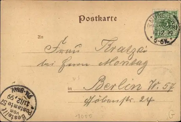Zustand, siehe Scan, gelaufen, 1899 - ca 14 cm X 10 cm