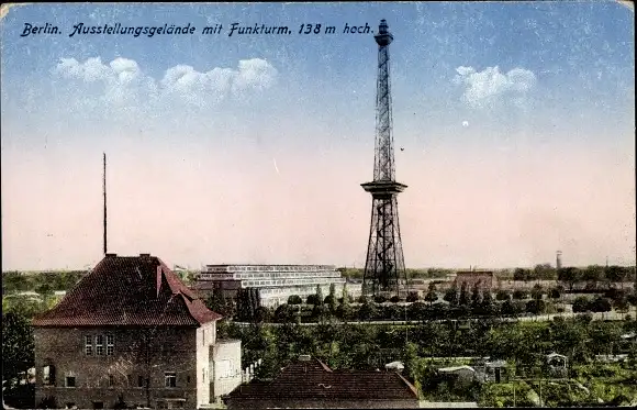 Ak Berlin Charlottenburg, Blick zum Funkturm, 138 Meter, Messegelände