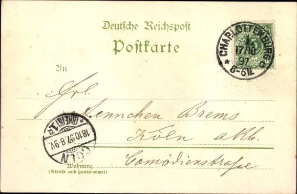 Zustand, siehe Scan, gelaufen, 1897 - ca 14 cm X 9 cm