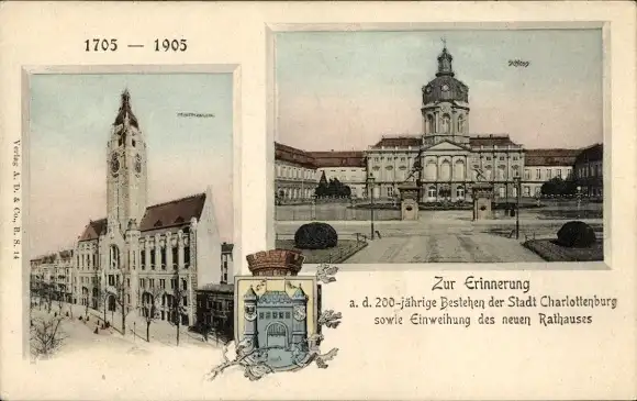 Ak Berlin Charlottenburg, Vorderansicht des neuen Rathauses, Aufzeichnung, Erinneru
