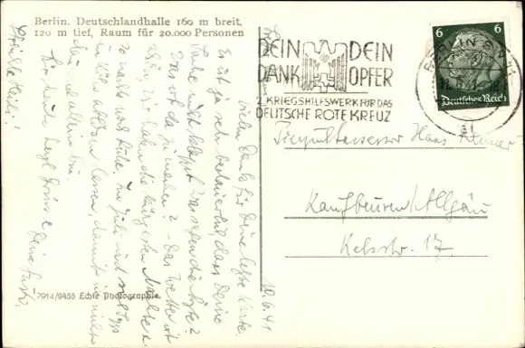 Zustand siehe Scan, 1945, gelaufen - ca 14 cm X 9 cm